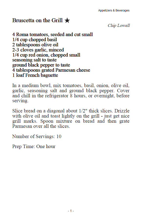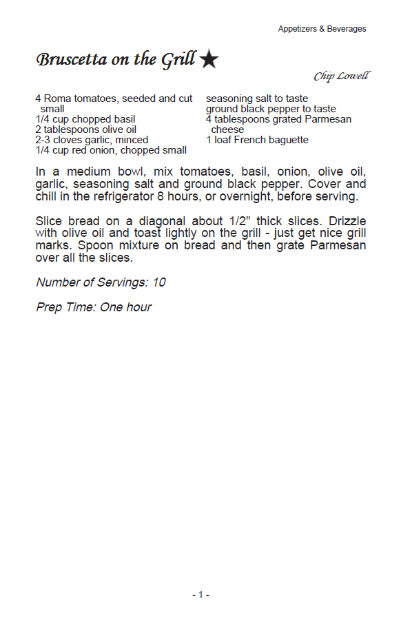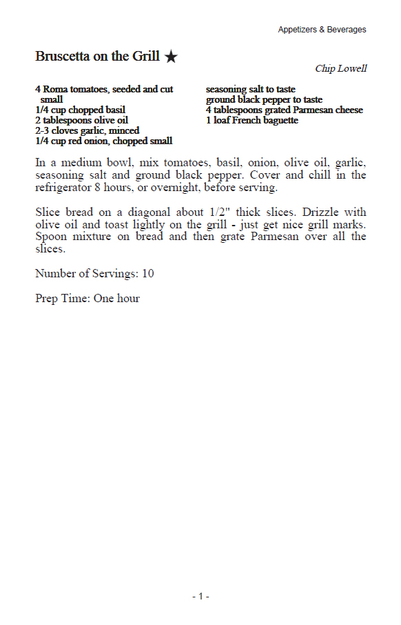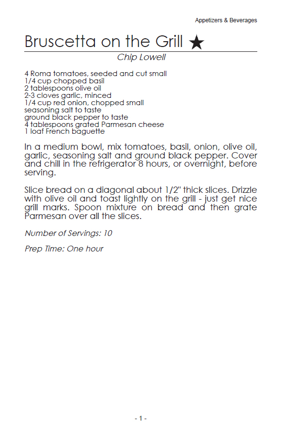 Recipe pages are the "meat" of your cookbook! We have many pre-set layout options to choose from, and you can create your own custom layout, too. Here are our preset design - click an image for a full screen view.